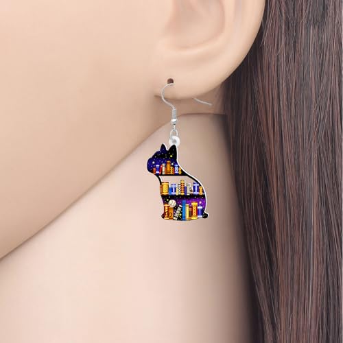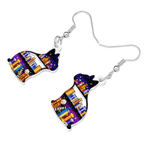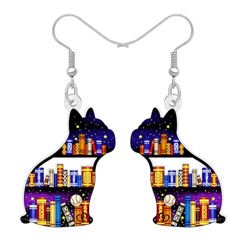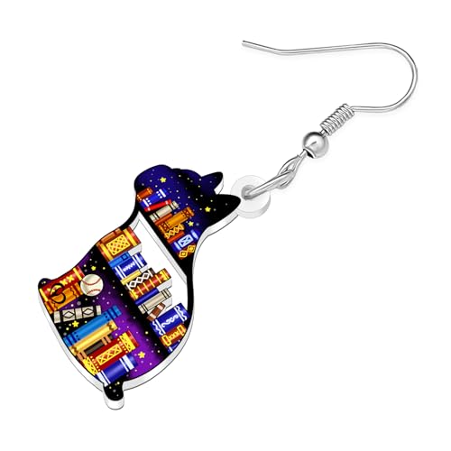 DUOWEI - ديووي اقراط متدلية لطيفة على شكل كلب من الاكريليك، هدايا تقدير للمعلم للنساء والام ومحبي الكلاب، والجراء مع رف للكتب، مجوهرات التخرج للطلاب