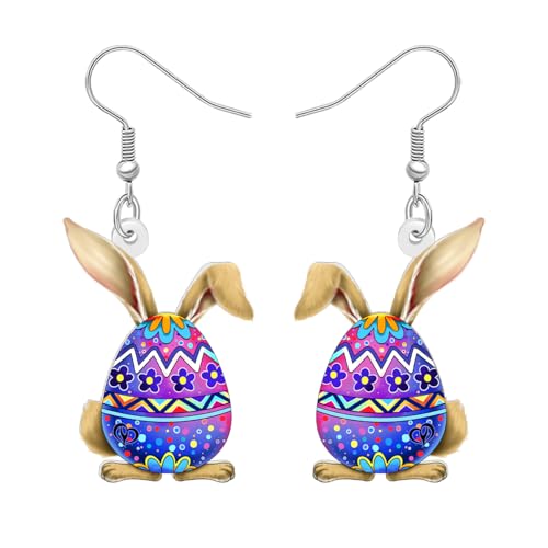 DUOWEI - DUOWEI Acrylic Cute Easter Eggs Bunny Rabbit Earrings Dangle Funny Hypoallergenic Spring Hare Jewelry for Women Mom Animal Lovers Easter Gifts Ideas