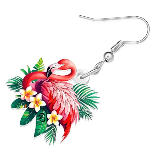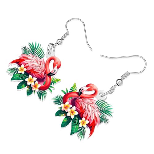 DUOWEI - DUOWEI Acrylic Cute Pink Flamingo Earrings Funny Hawaii Island Beach Tropical Bird Designer Earrings Dangle Lightweight Jewelry Gifts Ideas for Women Mom Animal Lovers Charms