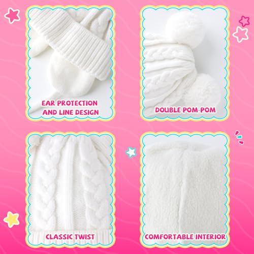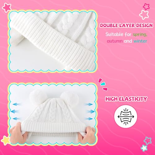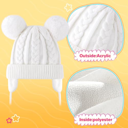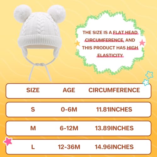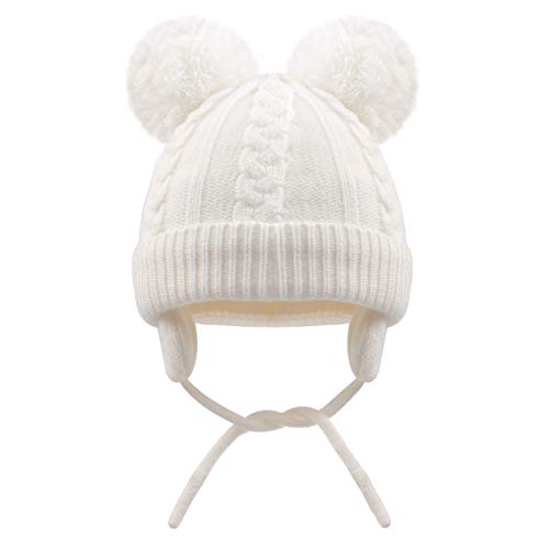 Duoyeree - طاقية صغيرة بآذان بوم بوم للأطفالي حديثي الولادة مزودة بأغطية للأذن للأولاد والبنات، من دويري، لون أبيض