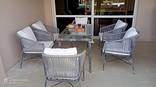 Generic - طقم سفرة دوبار كرسي عدد 6 + ترابيزة 70×140 سم، رمادي
