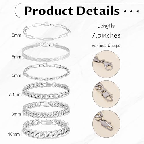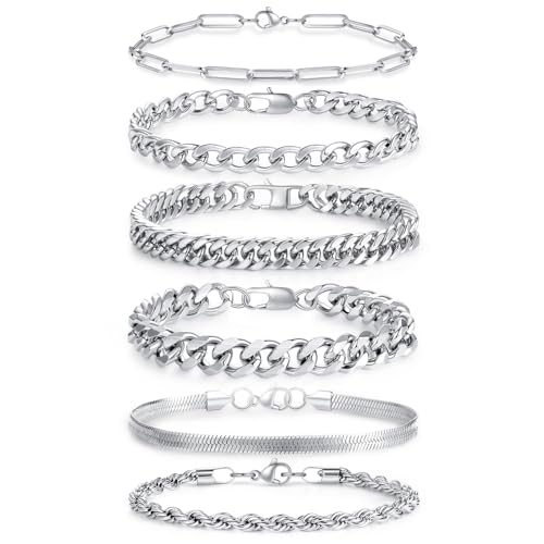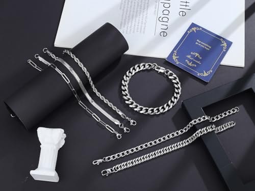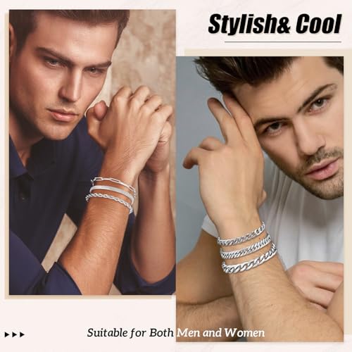 DUQGUHO - إسورة من دوكجوهو للجنسين، مصنوعة من الستانلس ستيل، بلون فضي وتصميم كوبان سلسلة، متوفرة بمقاسات 19 و21 و23 سم