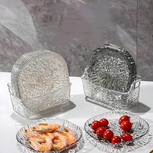 Generic - مجموعة أطباق اكريليك متينة من 7 قطع مع حامل لتقديم الوجبات الخفيفة والفواكه والمقبلات والكيك، مقاومة للكسر والصدمات ومناسبة لتناول الطعام اليومي والمناسبات