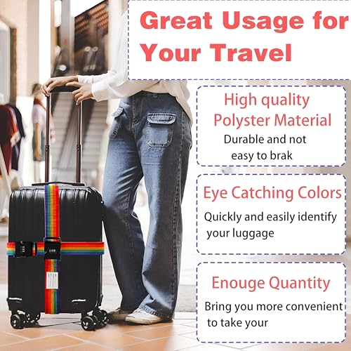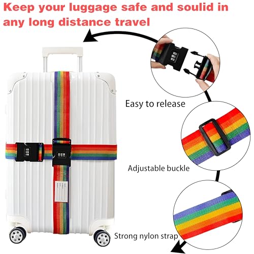 - 3. لا يضيف لون قوس قزح النابض بالحياة للحزام لمسة مرحة وأنيقة فحسب، بل يسهل أيضًا تحديد أمتعتك على حزام الأمتعة المزدحم. لا مزيد من الارتباك أو الخلط مع حقائب المسافرين الآخرين!