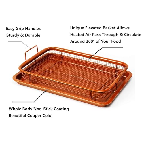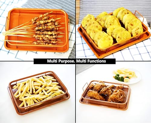 - نتائج مقرمشة بشكل مثالي: استمتع بالدجاج المقلي اللذيذ أو لحم الخنزير المقدد أو رقائق البطاطس مع صواني الفرن هذه التي تحافظ على وجباتك أكثر صحة من خلال منع الإفراط في استخدام الزيت أو الزبدة. حافظ على الكوليسترول والوزن تحت السيطرة دون التنازل عن المذاق