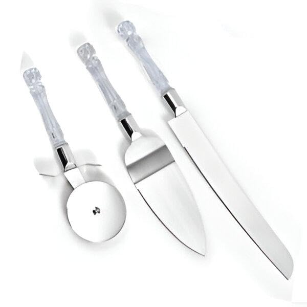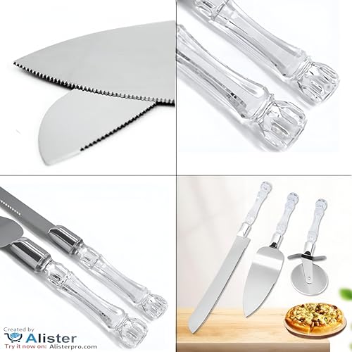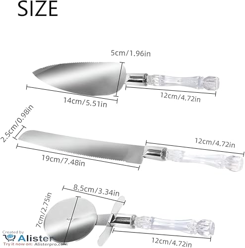 - تتميز مجموعة تقديم الكيك والحلوى الأنيقة المكونة من ثلاث قطع بشفرات حادة من الستانلس ستيل مع مقابض أكريليك شفافة. تم تصميم هذه المجموعة لضمان التقطيع والتقديم بدقة، مما يجعلها مثالية لمختلف أحجام الكيك والحلويات. مزيج من العملية والأناقة يعزز أي تجربة طعام.