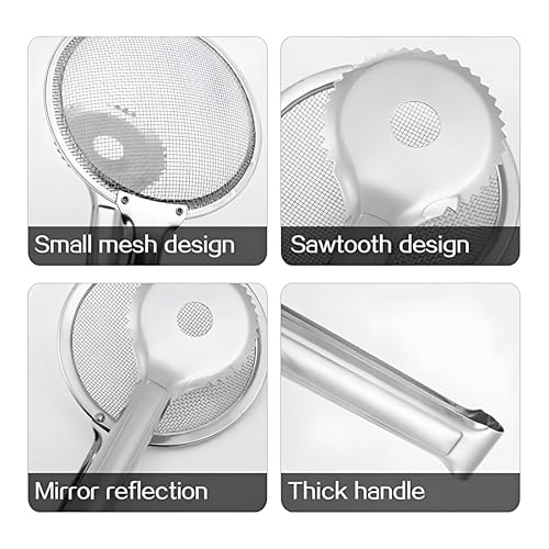 - حجم المغرفة الشبكية الدقيقة يبلغ 4.7 انش، وهو الحجم المثالي لحمل معظم الأطعمة المقلية مثل قطع الدجاج ورقائق البطاطس. المقبض بطول 11.8 انش يضمن لك مسافة آمنة بينك وبين وعاء الزيت، مما يقلل من خطر تناثر الزيت أثناء الطهي.