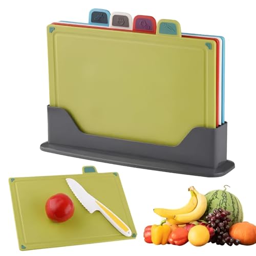 Generic - الواح تقطيع متينة - تتضمن 4 الواح متعددة الاستخدامات مع حامل قوي، تصميم مقاوم للخدش، مقاوم للانزلاق مع اخدود للعصير.