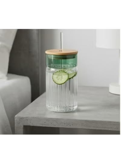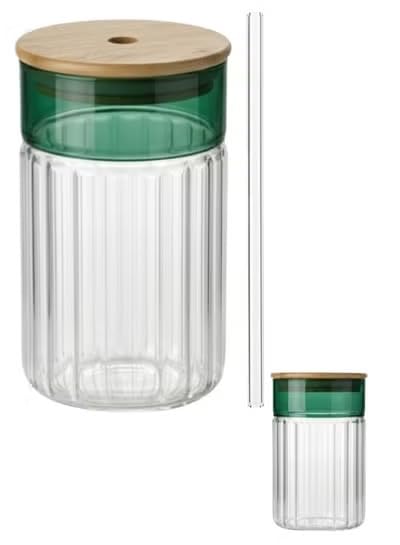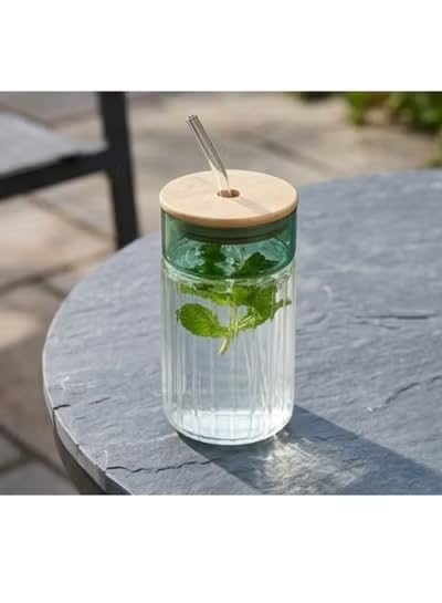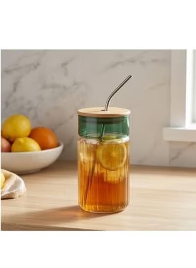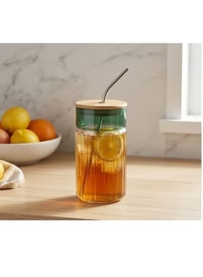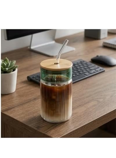 Generic - كوب زجاجي متين مع غطاء من الخيزران وماصة قابلة لاعادة الاستخدام - رائع للمنزل والمكتب والاماكن الخارجية والحديقة والقهوة والشاي والسموذي