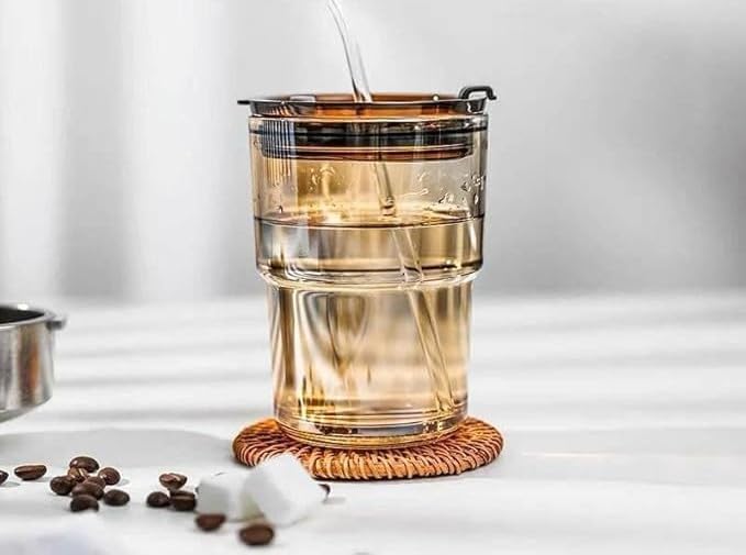 - تصميم عملي: يأتي مع غطاء محكم الإغلاق وشفاطة زجاج قابلة لإعادة الاستخدام بطول 12 سم، متوفر بلونين عسلي ورمادي أنيق