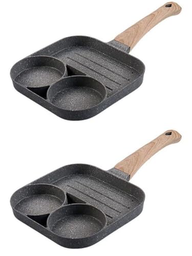Generic - طاسة شواء متينة من الجرانيت 2 في 1 مع مساحتين للطهي بمقبض خشبي سهلة التنظيف وآمنة للاستخدام في الفرن والموقد وموفرة للغاز والجهد للاستخدام اليومي - (قطعتان)