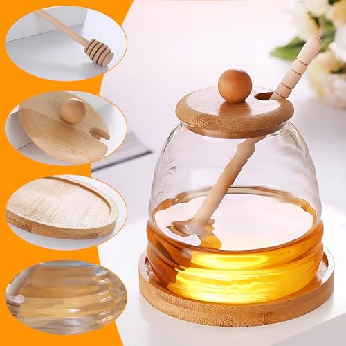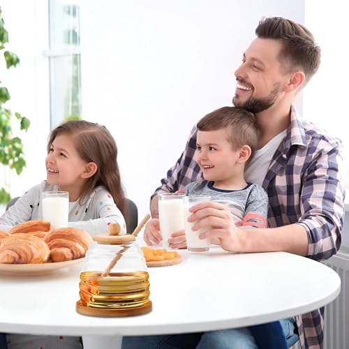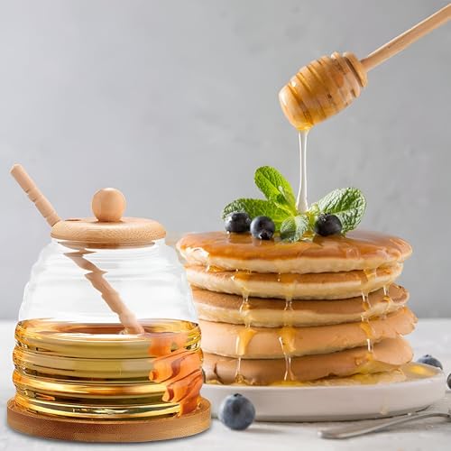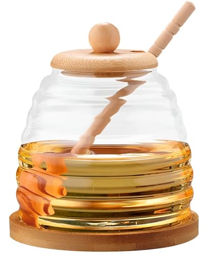 - مصنوع من زجاج شفاف عالي الجودة وخشب طبيعي، يضمن برطمان العسل هذا حل تخزين غير سام وعديم الرائحة وصديق للبيئة يحافظ على نقاء ونضارة العسل أو الشراب مع السماح بمراقبة بصرية سهلة للمحتوى المتبقي.
