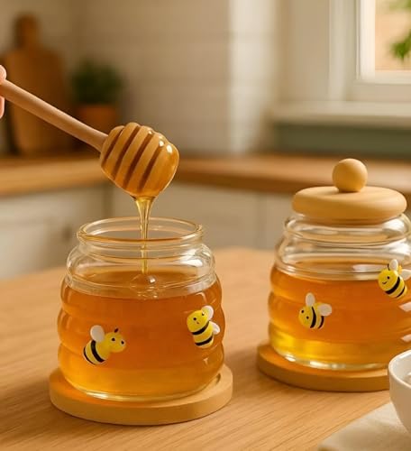 - تصميم الفم الواسع وسعة 500 مل يجعله مثاليًا لغمس العسل وتحويله باستخدام الملعقة الخشبية المتضمنة، مما يقلل من القطرات ويضمن الوصول السهل للاستخدام اليومي في الإفطار أو في المطبخ.