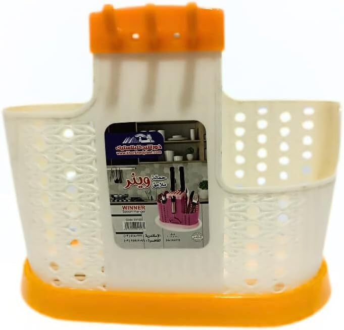 Generic - منظم أدوات المائدة من البلاستيك المتين – حمالة ملاعق وشوك وسكاكين للمطبخ بتصميم عملي وسهل التنظيف (برتقالى +2 ملاعق سليكون)