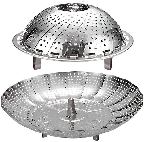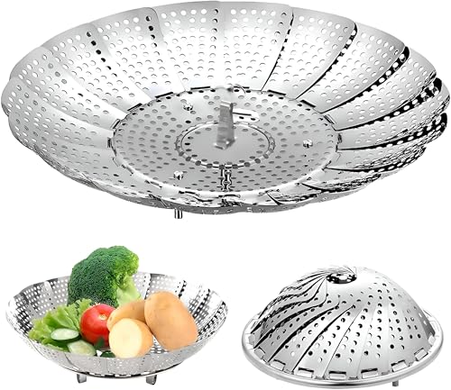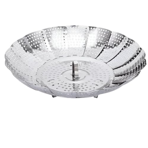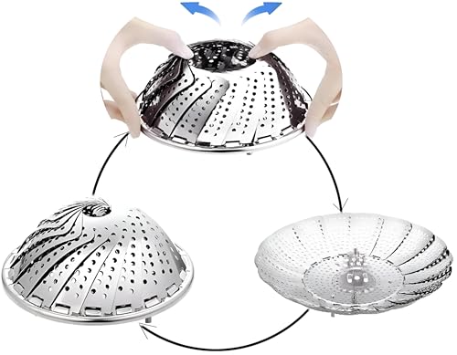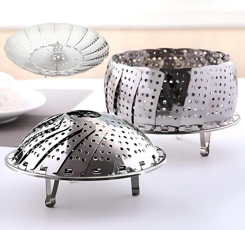Generic - مصفاة طهي بالبخار متينة وقابلة للطي من الفولاذ المقاوم للصدأ، مثالية للخضروات والمأكولات البحرية واحتياجات الطبخ متعددة الوظائف