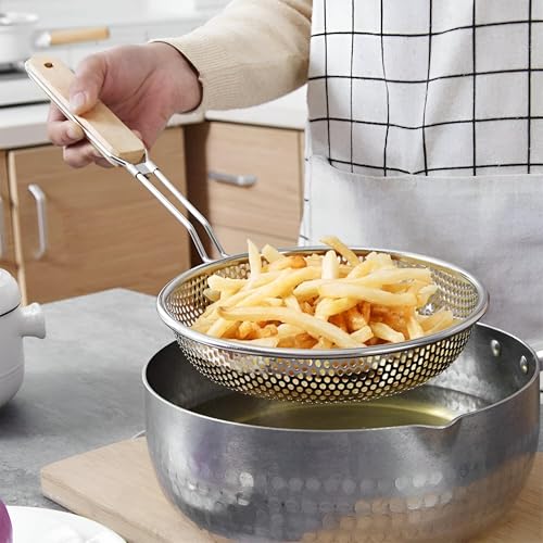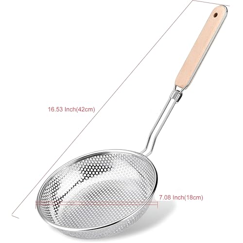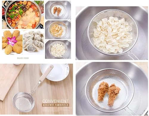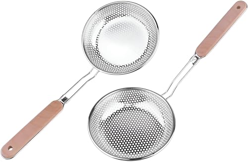 Generic - مصفاة متينة من الفولاذ المقاوم للصدأ ذات ثقوب دقيقة، مثالية لتصفية المعكرونة والشعيرية، مزودة بمقبض خشبي مريح، مقاس 14 سم للطهي بكفاءة (2 مصفاه)