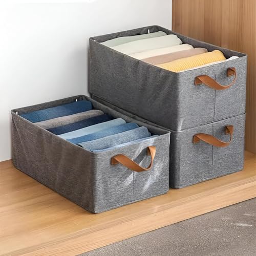 Generic - حل تخزين متين - صندوق قماشي كبير قابل للطي بمقابض لتنظيم الالعاب والكتب، مثالي للارفف والخزائن (3 قطع)