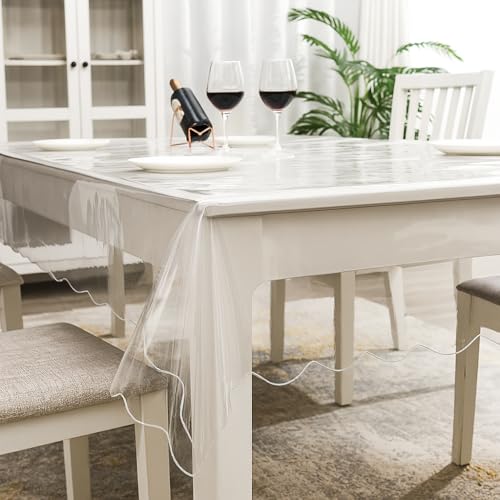 - مادة بلاستيك PVC متينة وسميكة - مصنوع من الفينيل الفاخر بنسبة 100%، واقي مفرش الطاولة الشفاف هذا سميك ويدوم طويلاً وخالي من BPA. يحمي أثاثك دون إخفاء جماله الأصلي.