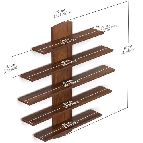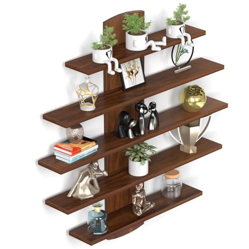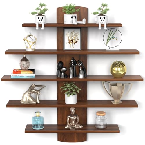 DURATECH FURNITURE'S - رف حائط ديكوود من 5 طبقات من دوراتيك، رف عرض خشبي هندسي، يثبت على الحائط، لغرفة المعيشة وغرفة النوم والمكتب، 12.5 عمق × 90 عرض × 90 سم ارتفاع، بني غني