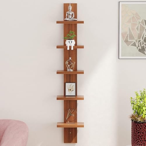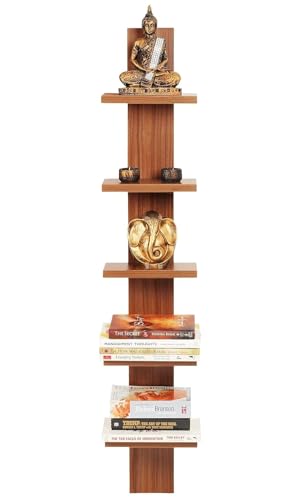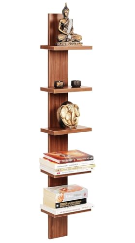 DURATECH FURNITURE'S - ارفف حائط خشبية هندسية لغرفة المعيشة من دوراتيك | رف خشبي منحني يثبت على الحائط | رف عرض انيق للصور والديكورات والمطبخ وغرفة النوم والرواق والحمام (بني)