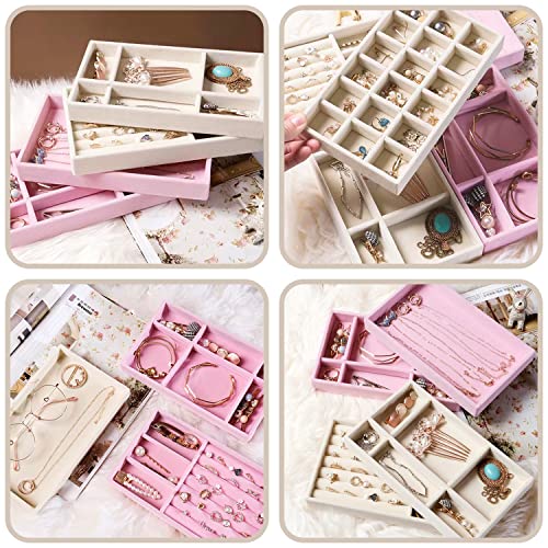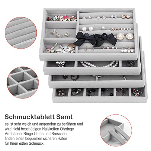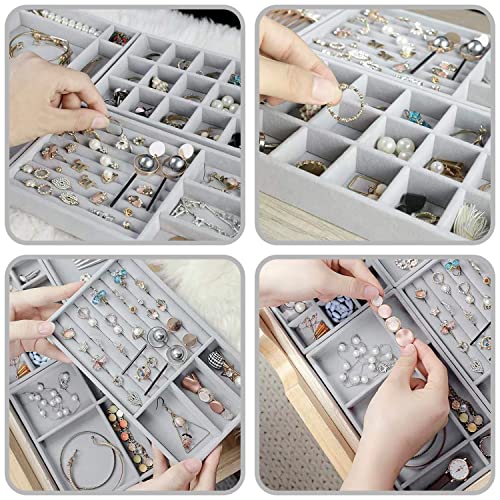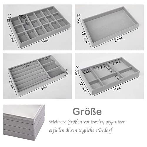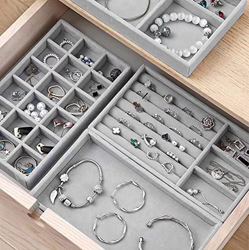 Duscdesp - درج تخزين مجوهرات قطيفة بتصميم قابل للتكديس ومكون من 4 قطع لتنظيم المجوهرات والحلقان والأساور والخواتم من دوسكديسب (لون رمادي)