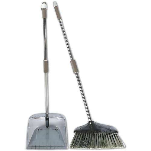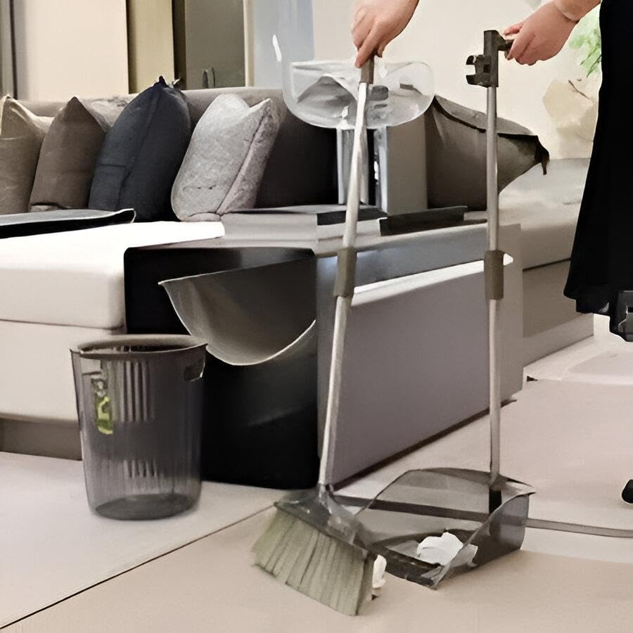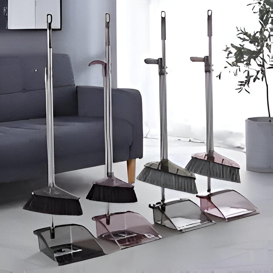Generic - تنظيف الغبار - مكنسة ارضية وجاروف حديثة من الاكريليك بمقبض طويل مريح، مصممة لتنظيف المنزل والمطبخ والمكتب بكفاءة بالوان شفافة متعددة