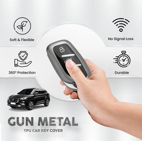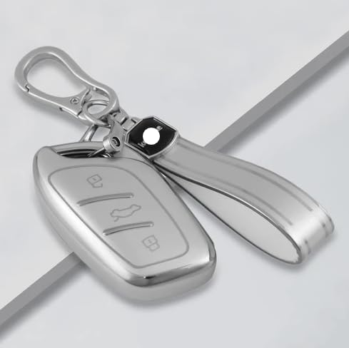 Generic - غطاء مفتاح السيارة من السيليكون الحراري (TPU) بلون فضي غباري مع سلسلة مفاتيح – متوافق مع مفتاح MG Astor وZS EV الذكي – موديل SDTP65