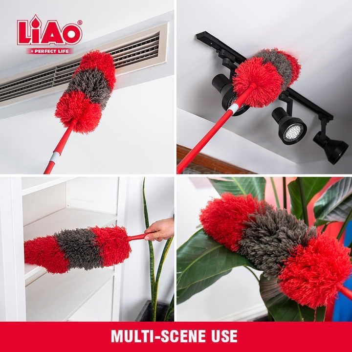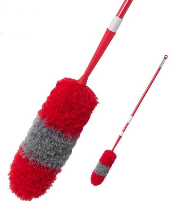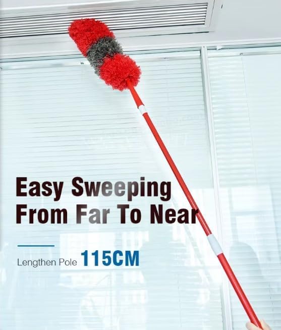 - مقبض مرن وقابل للتمديد – يصل بسهولة إلى الرفوف العالية، ومراوح السقف والزوايا الضيقة دون الحاجة للتسلق أو التمدد. يمتد المقبض بسلاسة لتغطية مساحات واسعة بسهولة ودون عناء.