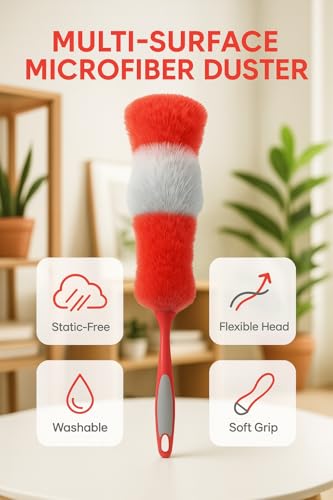 - امسح الغبار في ثوانٍ- فرشاة منفضة الغبار مصنوعة من الألياف الدقيقة للتخلص من الجزيئات الدقيقة من التابلوه إلى رف الكتب بتمريرة واحدة، مما يحافظ على رحلتك ومنزلك خاليًا من البقع بين أيام التنظيف العميق.