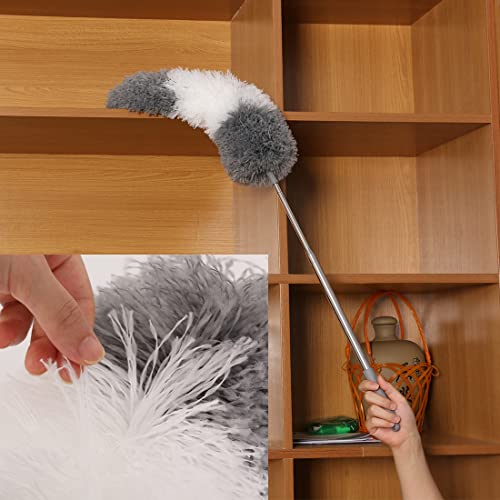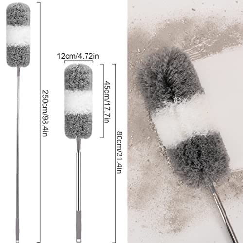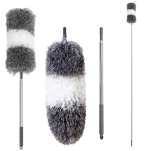 HI FINE CARE - زعافة غبار ريش للتنظيف من المايكروفايبر وقابلة للتمديد مع عمود طويل من 76 سم إلى 2.54 م، منفضة لتنظيف مروحة السقف والسقف العالي وشبكة العنكبوت والأثاث والسقف الداخلي