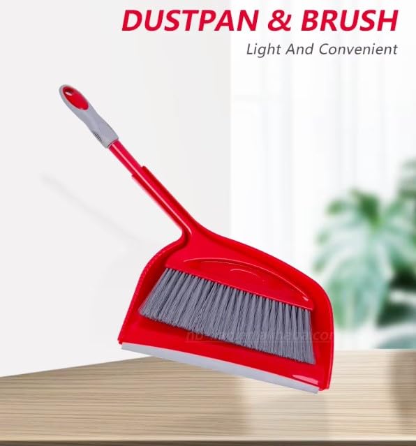 Generic - جاروف وفرشاة مقشة من البلاستيك بمقبض طويل - أدوات تنظيف فعالة للمنزل والمكتب