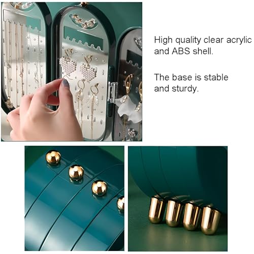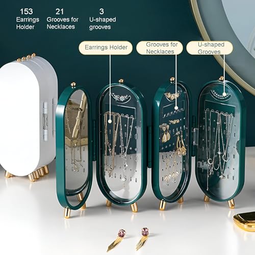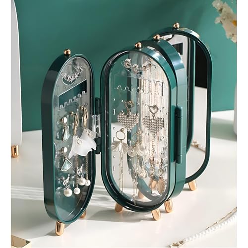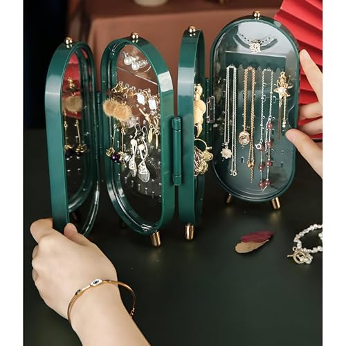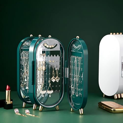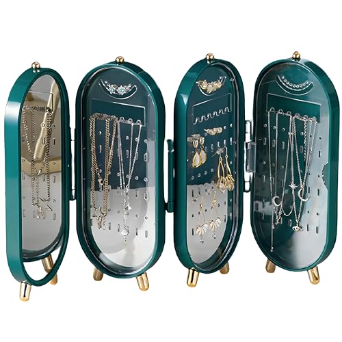 Generic - حامل قلائد مقاوم للغبار - وحدة قابلة للطي بـ 4 أبواب مع مرآة، مثالية للقلائد والأقراط بلون أخضر