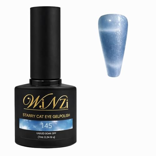 WINZI - طلاء جل عين القط بلون ازرق داستي - تاثير لامع مغناطيسي، لون رمادي وازرق ناعم، تطبيق سلس، لمسة نهائية لامعة تدوم طويلا - درجة 145