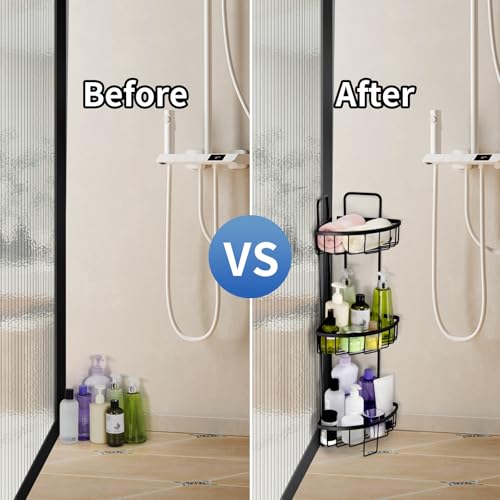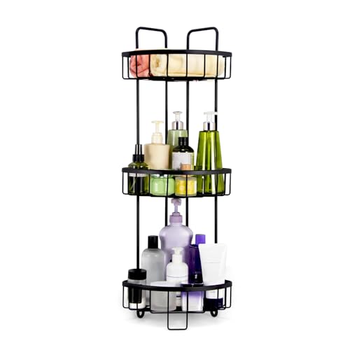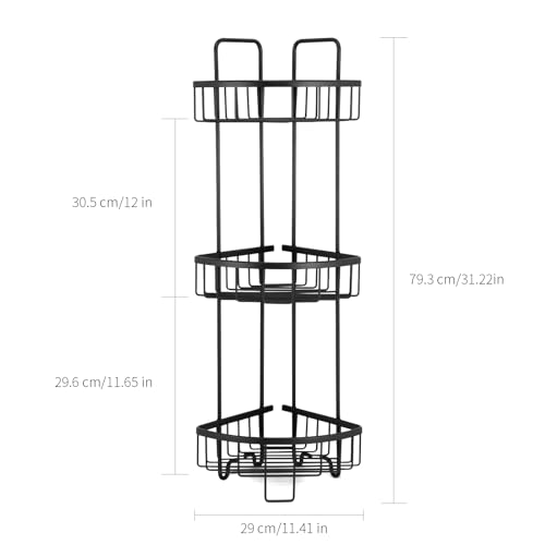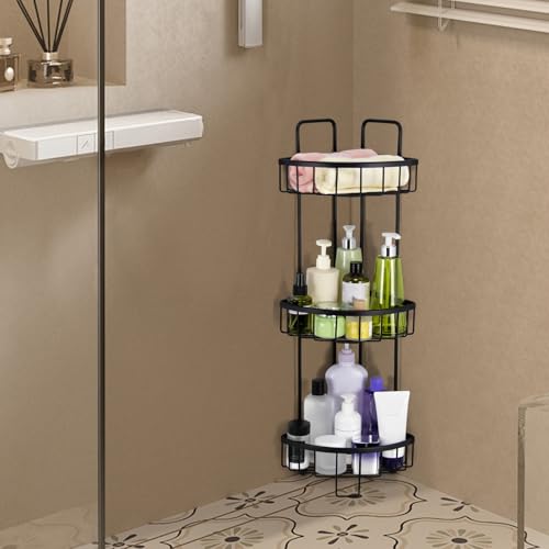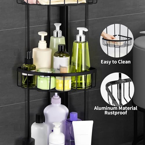 Duwee - حامل دش قائم من 3 طبقات، منظم تخزين من الألومنيوم المقاوم للصدأ، حامل دش قائم للحمام والمرحاض والسكن والمطبخ من ديووي (أسود)