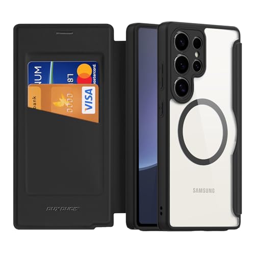 DUX DUCIS - جراب حماية اكس برو ماج متوافق مع سامسونج جالاكسي S25 الترا من دوكس دوكيز، جراب جلد قابل للطي مع تقنية ماج سيف وحجب تحديد الهوية بموجات الراديو وفتحة بطاقة وقفل مغناطيسي وحماية 360 درجة، أسود