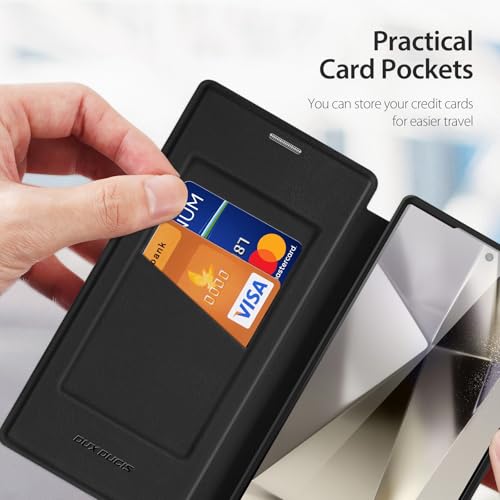 DUX DUCIS - جراب حماية جلد صناعي من سلسلة [سكين اكس برو] بتصميم مطوي مع فتحة للبطاقات متوافق مع تقنية الشحن اللاسلكي ماج سيف لموبايل سامسونج جالاكسي S24 الترا من دوكس دوكيز، لون أسود