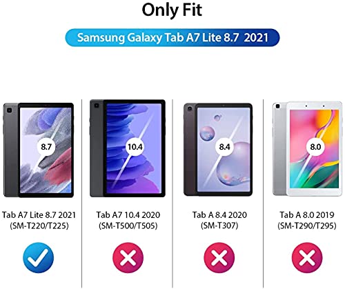 - 【التوافق】 متوافق فقط مع تابلت سامسونج جالاكسي تاب A7 لايت 2021 مقاس 8.7 بوصة (-T220 / -T225). يرجى عدم شراء هذا المنتج لجهاز سامسونج جالكسي تاب A7 2020 مقاس 10.4 بوصة (T500 / T505).