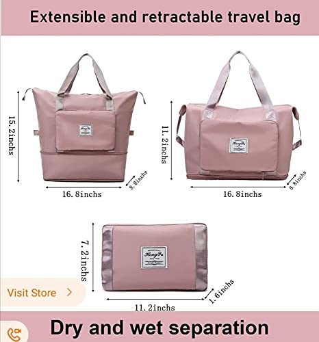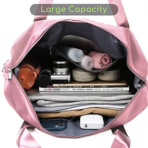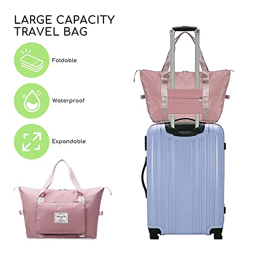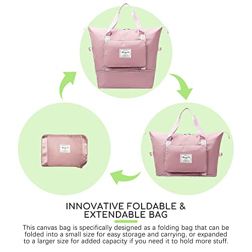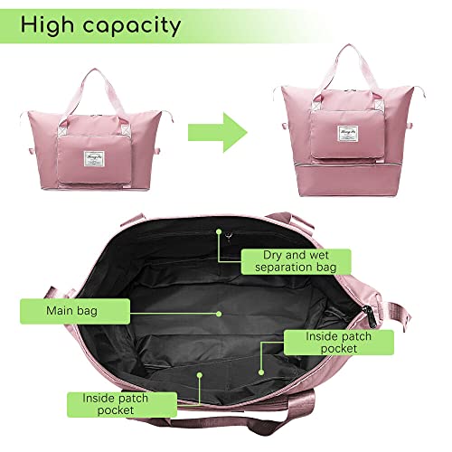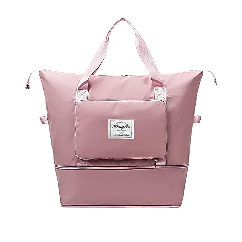 DWDC - شنطة دفل كبيرة السعة للسفر، شنطة رياضية محمولة قابلة للتوسيع والطي ومناسبة للحمل على الطائرة وصالة الالعاب الرياضية والمبيت ليلة واحدة واجازة نهاية الاسبوع والتخييم للرجال والنساء، بينك، بسيطة، قماش