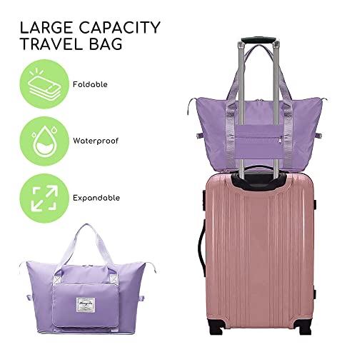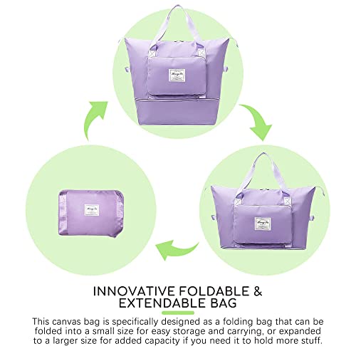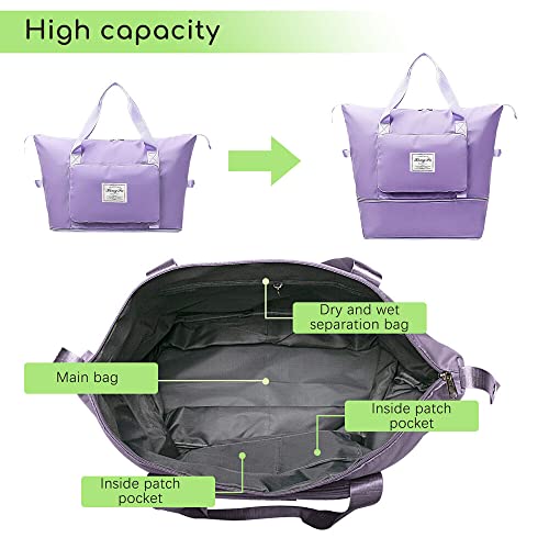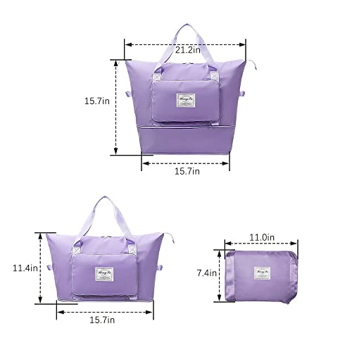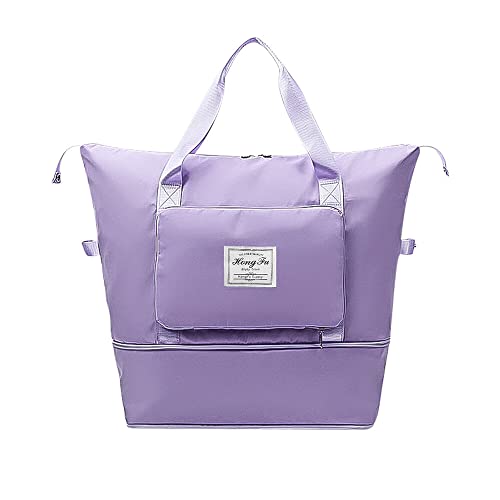 DWDC - شنطة دفل كبيرة السعة للسفر، شنطة رياضية محمولة قابلة للتوسيع والطي ومناسبة للحمل على الطائرة وصالة الالعاب الرياضية والمبيت ليلة واحدة واجازة نهاية الاسبوع والتخييم للرجال والنساء, أرجواني، قماش