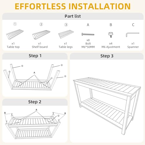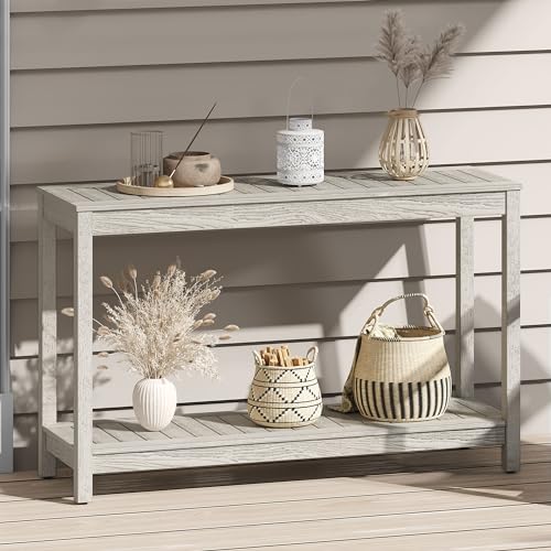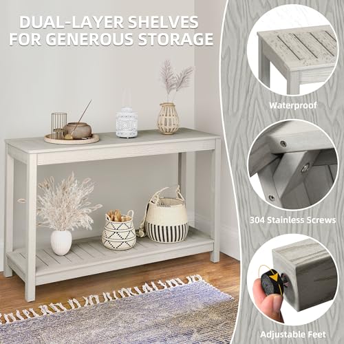 DWVO - دي دبليو في او طاولة كونسول 48 انش، منظم تخزين متعدد الوظائف من مادة هيبس للاستخدام الداخلي والخارجي مع ارجل قابلة للتعديل (رمادي)