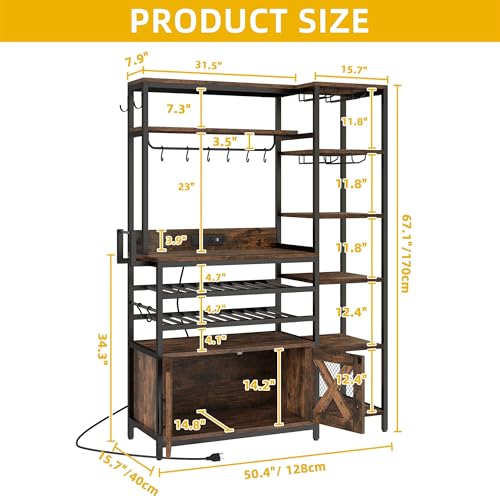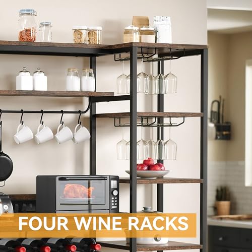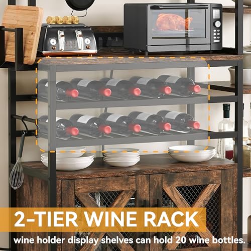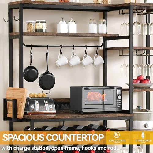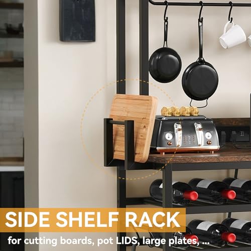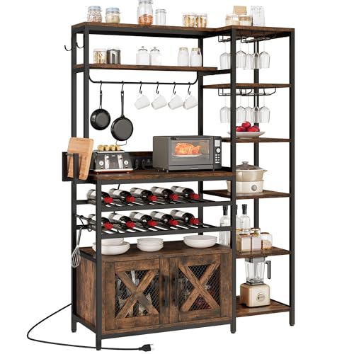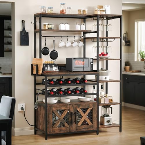 DWVO - وحدة تخزين بستو أرفف مع خطاف مزودة بمخرج طاقة مع مساحة تخزين للميكروويف والنبيذ والأكواب ومنظم أرفف مطبخ من الخشب والمعدن لغرفة الطعام من دي دبليو في او، لون بني ريفي