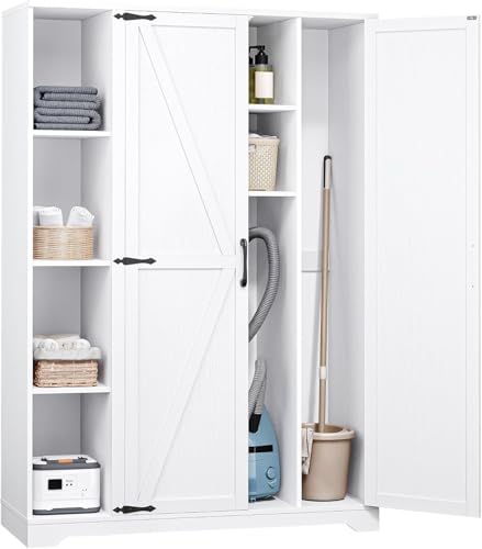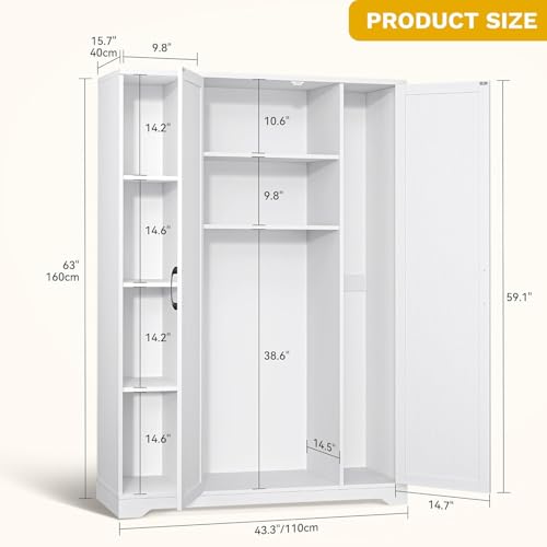 - مساحة تخزين واسعة: تتميز خزانة التنظيف هذه بتصميم ببابين مع أرفف قابلة للتعديل على الجانب الأيسر مما يوفر مساحة تخزين واسعة لأدوات التنظيف ومستلزمات الكي وما إلى ذلك.