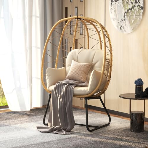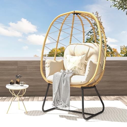 DWVO - دي دبليو في او كرسي فناء بتصميم سلة بيض مع حامل مضاد للانزلاق وسهل الحمل ومناسب لجميع الاحوال الجوية للاستخدام الداخلي والخارجي بوزن 330 باوند (بيج)
