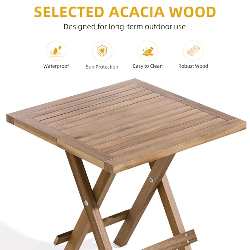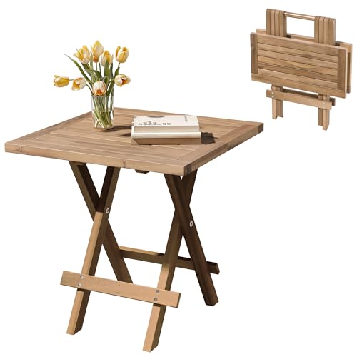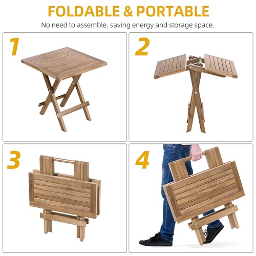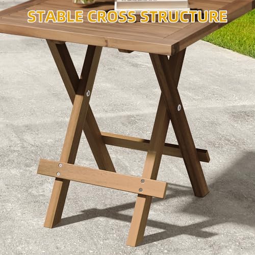 - جاهزة لجميع الأحوال الجوية: مصنوعة من خشب السنط المتين، هذه الطاولة الجانبية القابلة للطي في الهواء الطلق تتحمل أشعة الشمس والمطر والاستخدام اليومي؛ الجزء العلوي الشرائح يساعد على تصريف المياه بسرعة ويحافظ على السطح جافًا