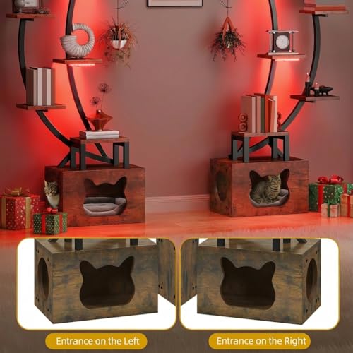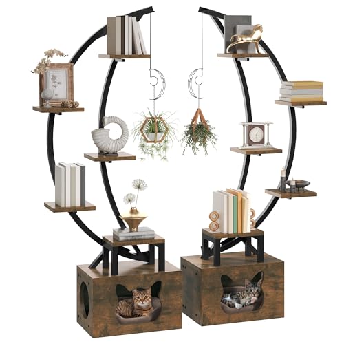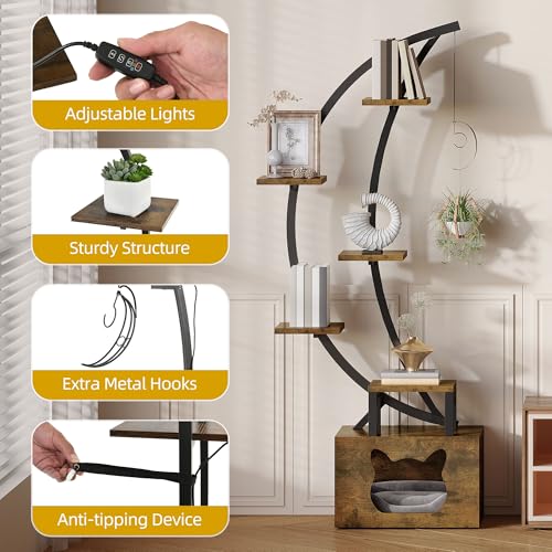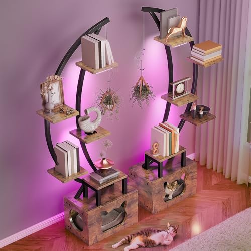 DWVO - دي دبليو في او رف كتب طويل مع ضوء LED، خزانة كتب مصممة بشكل فني على شكل قمر مع صندوق فضلات القطط، رف عرض زاوية من 10 طبقات للمنزل والمكتب وغرفة النوم