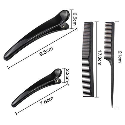 - [التعبئة والتغليف]: ستحصل على مقاسين مختلفين من مشابك تقسيم الشعر بطول 9.5 و8 سم، تحتوي العبو على 6 قطع لكل منهما. كما أنها مزودة بمشط مدبب للذيل ومشط للقص، ما يكفي لتلبية احتياجاتك اليومية.
