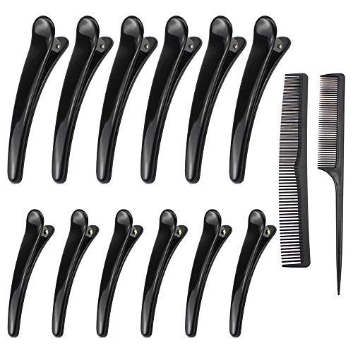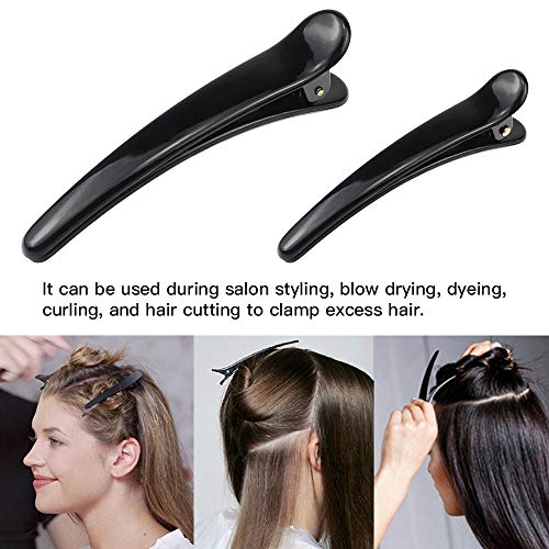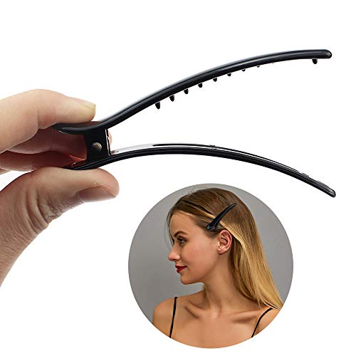 DXLing - مشابك لتقسيم الشعر (12 قطعة باللون الاسود)، دبابيس شعر بلاستيكية بمقاسين، لتصفيف الشعر، اقواس، على شكل بطة، تمساح مع ذيل مشط اسود للسيدات والفتيات، ادوات صالون من دي اكس لينج.