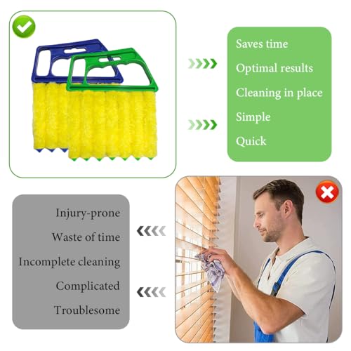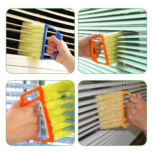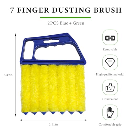 DXNQ - أداة تنظيف الغبار من دي اكس ان كيو، فرشاة تنظيف غبار الشباك الفينيسية المحمولة باليد بـ7 أصابع، فرشاة تنظيف الستائر لغالقات الشباك ومكيفات الهواء، اكسسوارات السيارات (أزرق + أخضر)