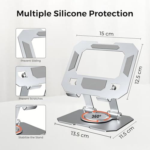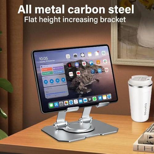 Dyazo - حامل تابلت من الألومنيوم بقاعدة دوارة 360 درجة، تعديلات متعددة الزوايا متوافق مع اي باد برو 12.9 | 11 | 10.9 | 10.2 | اير | ميني وسامسونج جالاكسي تاب ولينوفو باد وجميع أجهزة التابلت من ديازو - فضي