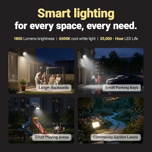 - تغطية واسعة رائعة 650 لومن تضيء المساحات الكبيرة مع 650 لومن من الضوء الأبيض البارد 6000 كلفن. يضمن الشعاع العريض 110 درجة إضاءة مثالية ومتساوية للحدائق والباحات والممرات الخارجية.